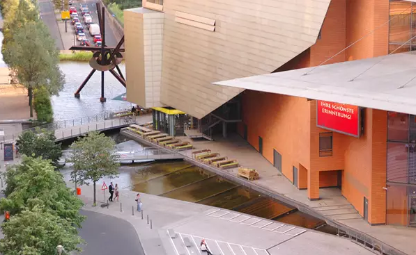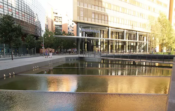 标志性的波茨坦广场承载着东、西柏林分裂而遗留的历史创伤。如薄沙般浅浅的流动台阶在微风拂动下,形成波光粼粼的韵律表面,为人们提供更多的亲水、戏水乐趣。