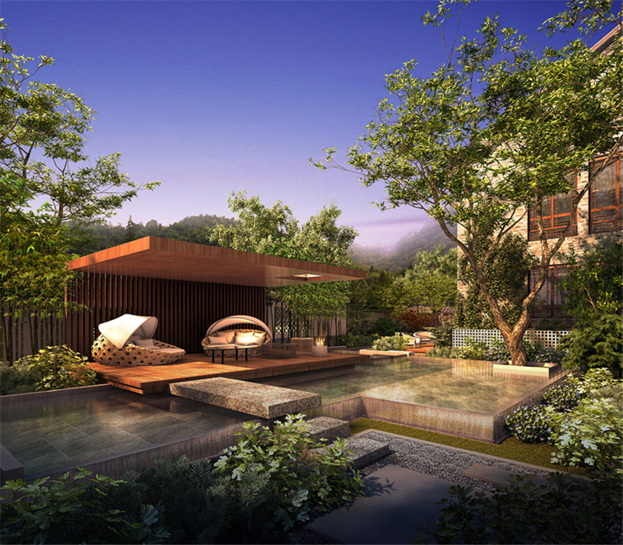 同样一小池水面,滴水的声响,要勾起你许多想念,石材当然精心挑选,它的形态质感、色彩组合要提炼成神化的山水,不是自然恰似自然的景地,是人对名山大川的向往,是人对自然的向往。纯净化的景象留下了大片思想的空白,这也就是中式庭院景观设计的特征。