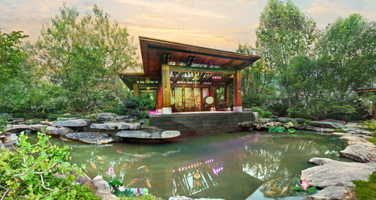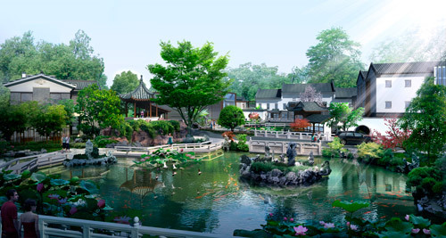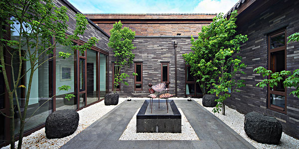 精心和细致也培养了观者的敏感和多情,有太多的细腻的场景片断,把墨绿的松针摆放在石板地上,聚散有致,一株红枫在竹林深处,井边石头包上了厚厚的茸样的青苔,细流潺潺从竹槽中流入井中,颜色深重的石井,水中浮着几片落花。某种种细微而注重细节,达到艺术化近极致的程度,这种对自然的提炼,使中式庭院景观产生了深远的禅意。