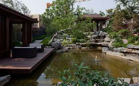 中式庭院营造禅宗的空灵、清远,是静穆、深邃、幽僻。中式庭院景观以水景为中心,水景及假山仿佛能浓缩自然千山万水之景象,几块山石前簇后拥,白砂一片,绿苔在青石上,白墙上婆娑着竹影,文雅娉婷的竹子,是中式庭院的主体植物,植在小径边,植在粉墙边,与竹灯与石灯相映增加自然朦胧的禅意,草种在石缝中和山石边的,营造大自然郁郁葱葱的绿意,树是刻意挑选几棵珍稀吉祥之木,置于园中。