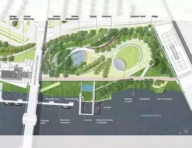 高差处理上尊重场地现有地形,不做过多的设计改动,减少土方工程。并可利用场地高差设置丰富的参与空间,达到场地的合理利用。