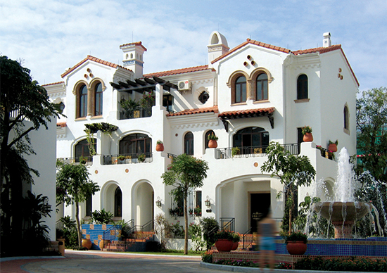 2、 法式建筑还有一个特点,就是对建筑的整体方面有着严格的把握善于在细节雕琢上下工夫。法式建筑的经典的,而不是时尚的,是经过数百年的历史筛选和时光打磨留存下来的。法式建筑十分推崇优雅、高贵和浪漫,它是一种基于对理想情景的考虑,追求建筑的诗意、诗境,力求在气质上给人深度的感染。风格则偏于庄重大方,整个建筑多采用对称造型,恢宏的气势,豪华舒适的居住空间,屋顶多采用孟莎式,坡度有转折,上部平缓,下部陡直。屋顶上多有精致的老虎窗,且或圆或尖,造型各异。外墙多用石材或仿石才装饰,细节处理上运用了法式廊柱、雕花、线条,制作工艺清细考究。法式建筑呈现出浪漫典雅风格。