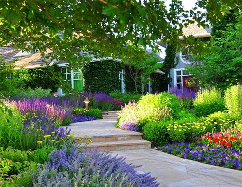 对于别墅花园设计而言,花草们永远是这里的主角,从茂密的薰衣草到成簇的小红花,形色各异的鲜花点缀着春夏秋冬的每一个时刻。这样的花园不需要特别的打理,只有有雨水、有阳光,它们便能带来一片勃勃生机。