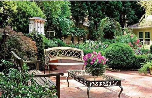 步骤3围合和铺装:所有庭院都必须注意围合的设计,因为斯密和安静必须要靠围栏、实墙、攀爬植物等的围合来实现。在庭院中,使用硬质材料(铺地、隔墙、户外家具)往往是决定庭院设计风格的关键。在古典庭院中,天然旧砖、铸铁家具和花架是成功的关键。