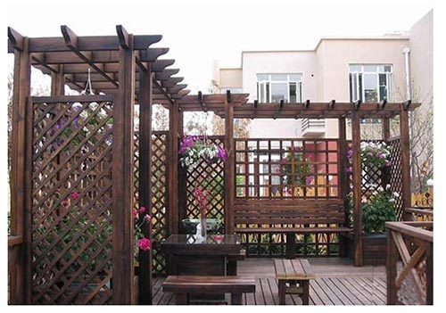 3、水是很多花园设计里不行缺的精灵,它可以与别墅花园中的统统元素共同构成一幅优美的水景图。而木料在家庭庭院中可以说是起着点睛的作用。户外家具,花槽、花架、秋千椅、围栏,无论用在庭院中的任何角落,它都市给人创造一种温馨、安宁、自然、和谐的氛围,满意人们对自然回归的急迫渴望。