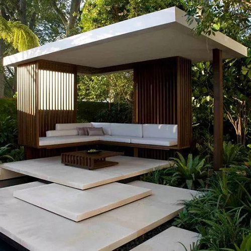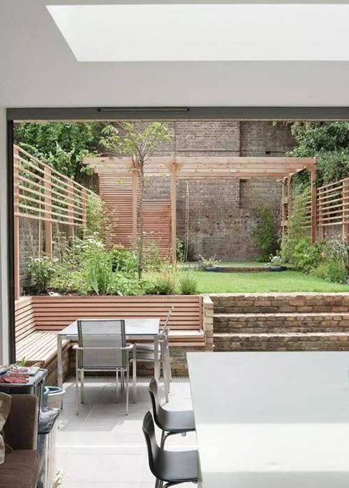 当我们面临一个面积不大的花园,又非常想尽力使用所有的空间,这时我们便可以动用不同的层级在空间中形成高差,