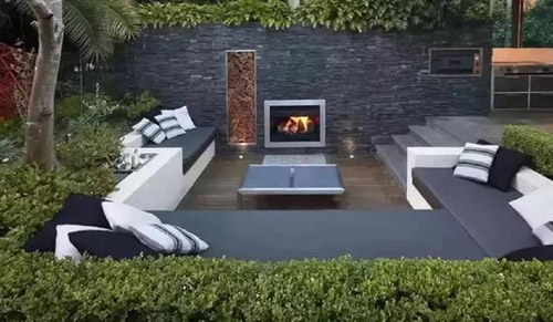 挡土墙下由于挖方一般会形成一个下沉式的空间。下沉式空间给人以包裹感和归属感,非常适合作为休憩场所,加上舒适的景观软装,就是一处完美的室外客厅了。