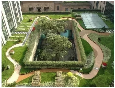 绿化屋而的平而布置是根据建筑物的环境条件、建设规模的大小、使用功能和要求进行绿化和设施的平而组合和空间设计。
