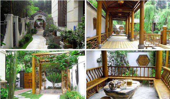 木头是最贴近自然的装修材料,花园中的露台、凉亭又或是栅栏可选用防腐木,不但可防腐、防虫、防水,还会给人带去质朴、温馨、清新自然的感觉。花园东南角L型凉亭平台可谓院子里最舒适的空间,这里是一家人室外休闲的聚集地。假日时邀亲友在自家庭院聚餐、喝茶、品酒,谈笑中释放生活压力,好生惬意。