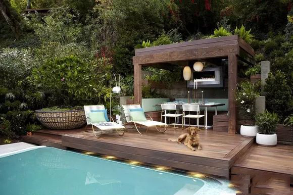 木质景观有着自然朴实、生态健康和高品位的特性,别墅花园木艺景观的原料以选择坚硬耐用、耐腐蚀的材料为好,以便其本身的自然美能更好地发挥,为庭院小品增色。