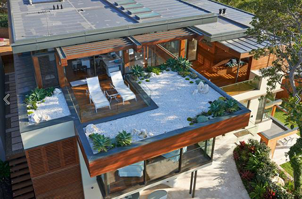 这个别墅最大的特色是:泳池和私家花园都建在了建筑的屋顶,整幢别墅的俯视效果非常的漂亮,有自己独特的美感,别墅的造型结构也颇具特色,几层的高度错落的叠加,非常有趣的组合到一块,形成了非常有设计感的格局。