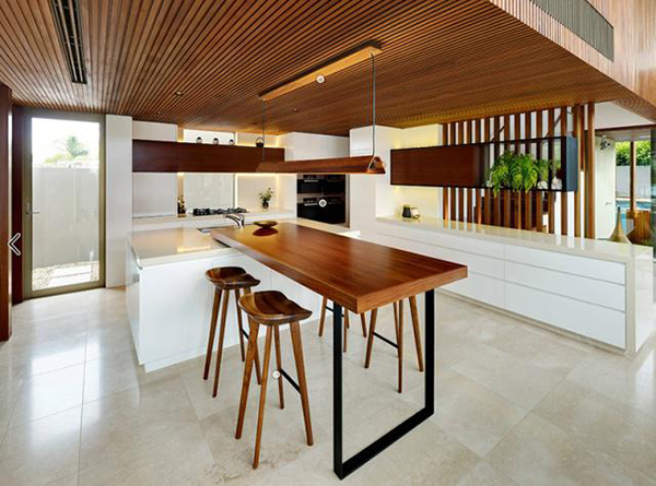 室内的设计风格采用了木色做为主色调,与白色进行了搭配,整体风格非常的沉稳大气,内院中还设有内庭院,种植了植物,布置了景致,非常有格调。