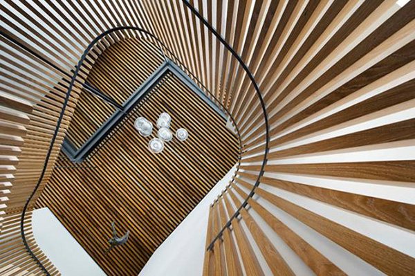 这个别墅的设计最大的特色是多用木头作为装饰,无论是建筑外墙的装饰,还是室内的隔断设计、吊顶布置装饰、家居装饰布置等都运用了木头作为主材。还设有旋转的木楼梯,进去观看整个建筑,仿佛是一件不可多得的艺术品。