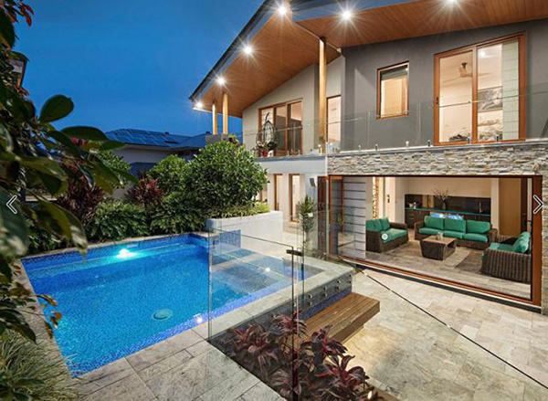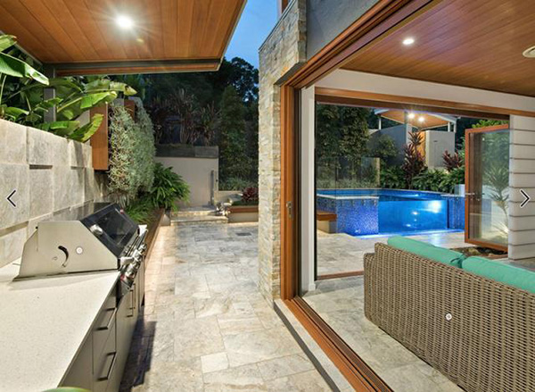 从泳池看别墅起居室