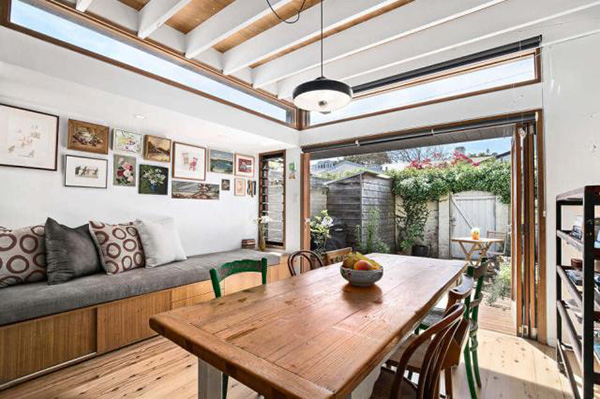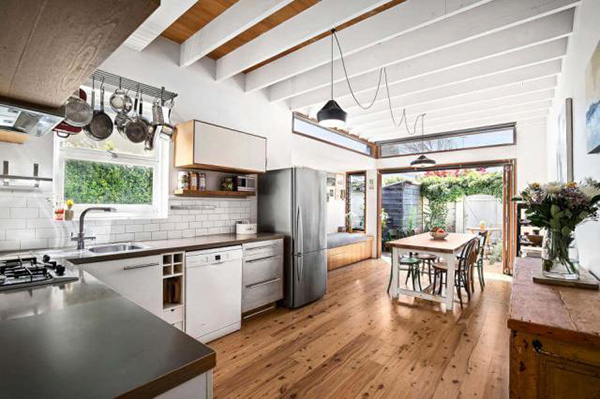 进入室内后真的是感觉别有洞天,虽然是在农村,但居住的方式也不能太落后,所以屋里做了一些标配的设计,有餐厅、厨房、客厅、卧室和室内独立卫生间,但是设计风格依然很简洁,搭配的一些软装家具也很接地气,多以木质家具为主。墙面基本刷白色油漆,吊顶做了木顶设计,造型简单漂亮,但很有层次,墙壁上有一些独特的窗口设计,细长的玻璃窗口让采光变得很好,餐厅的木质餐桌旧旧的,简单而朴实,靠近墙壁还做了休闲卡座,弥补了餐厅的空旷感,漂亮又实用。