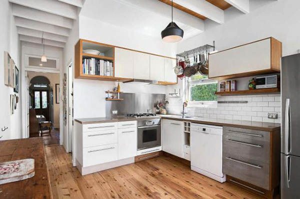 这是厨房的装修效果,布有精致的吊柜、地柜,收纳功能非常实用,合理的功能布置使用起来也很方便,屋里的装修虽简单,但一些装修细节却很精致,软装的搭配上也很有品位,再往里走就是客厅。