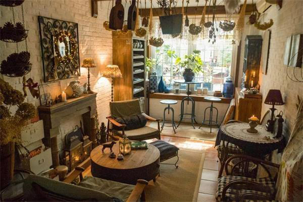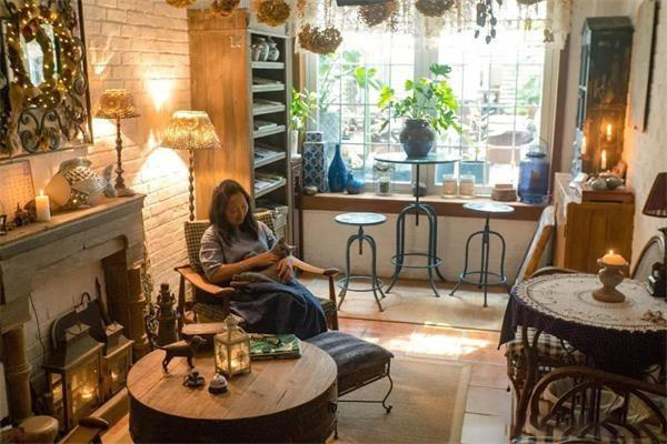 室内的布置稍微昏暗和仿古,这也就是陈莹莹想要的效果,整个室内的布置也是陈莹莹一步一步去完成的,陈莹莹很满意现在的布置。