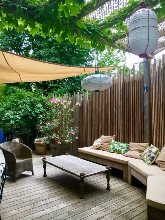 放在花园的沙发需要长期经受日晒雨淋的考验,需要使用专业的户外家具,可以选用防腐木、藤木、竹类材质的休闲沙发,如果你喜欢布艺靠垫,等不需要的时候收回室内即可,如果庭院不够大,桌椅也最好选择折叠式的,不用时可以收起来。