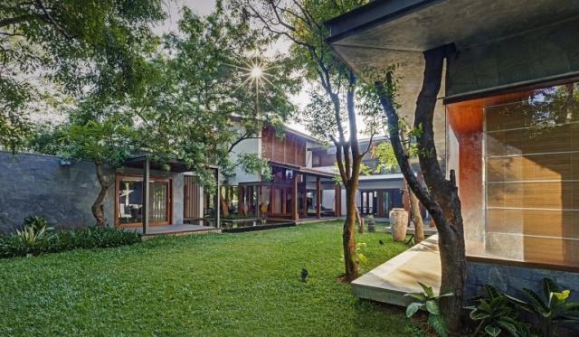花园中种植了许多树木,绿荫盎然的感觉美极了