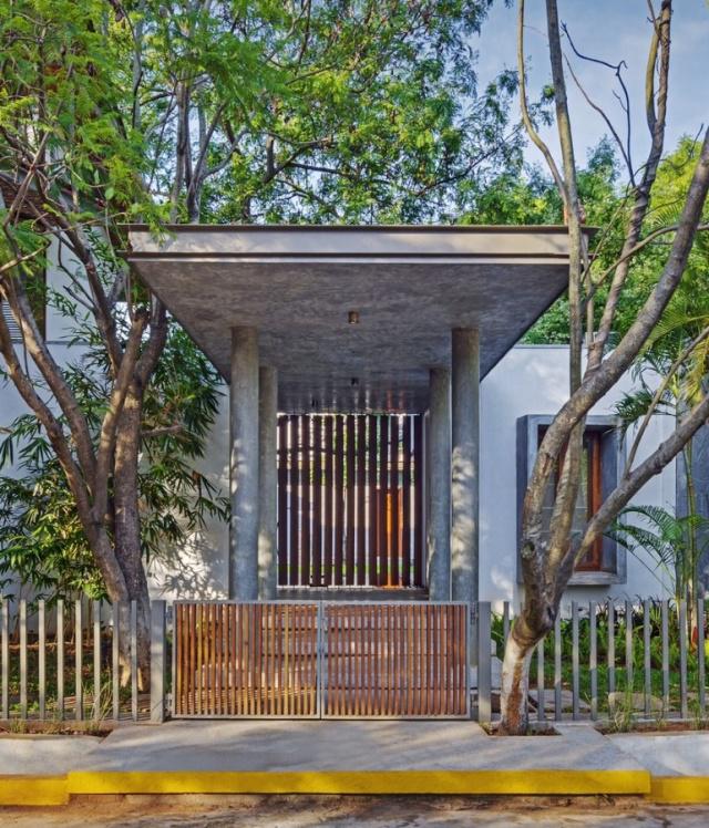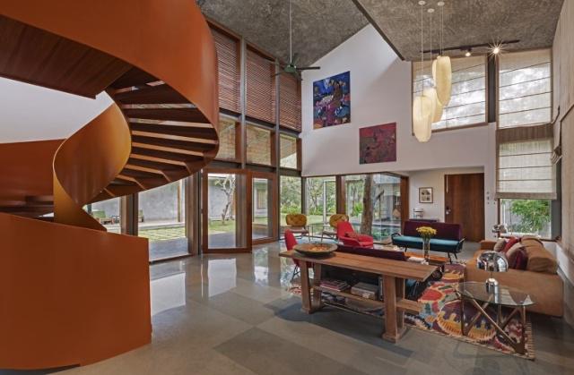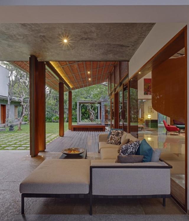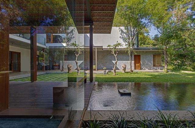 住宅花园里有一片大大的 草坪,绿色衬托着整个住宅
