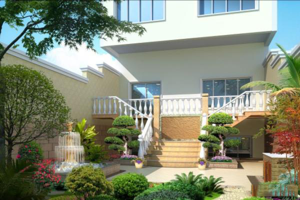 水是活性的代表事物,别墅里充满流水声会显得非常有生命力。在别墅花园装修的时候,在庭院的一角建造一个小小的喷泉,整个别墅都充满流水声,陶冶性情,使人心情愉快。花园中楼梯的两旁种植两棵迎客松,层次分明,一年四季都是绿色的,寓意节节高升。在花园的边缘处种植一些小花,有种万绿丛中一点红的感觉。