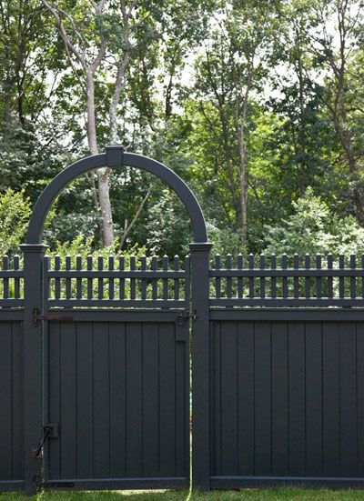 黑色的围墙帮助无缝融合的场地边界到周围的景观。