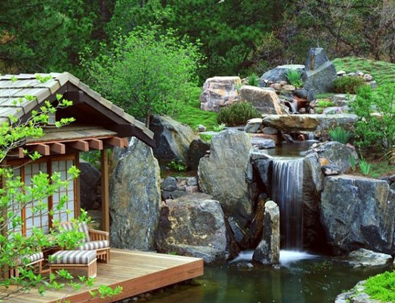 别墅后院瀑布一定会让任何一个房地产开发商惊叹。这是一种更加自然的设计,并且可以让你拥有一个自己的美丽瀑布和池塘。当你在台阶上去看这一别墅景观的时候,那种怡然自得可想而知。瀑布也会让人感觉到放松。想象你自己坐在一个树下,眼前便是这美丽的瀑布,并且还可以听到泉水直泄而下撞击到岩石上的声音,该由多么的美好。如果你还想在你的别墅住宅里感受更美的景观,那么发挥你的想象力,就能感受到这样的瀑布可以给你带来的无比惬意的感受。无关于设计,而更多是周围的景观能给你放松的感觉。