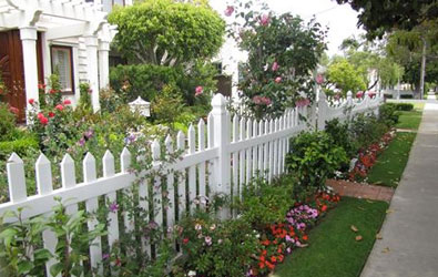 2.刷白木质的庭院小品。因为白色可以与周围多彩的植物有较明显地反差。