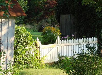 篱笆可以为现代别墅花园增加很多乡村的气息。略显陈旧的篱笆既可以做花园的外围,也可以做别墅花园植物的背景。对篱笆粉饰以白色或保留其自然的木质,效果都很好。石头墙也是一种花园外围的选择。