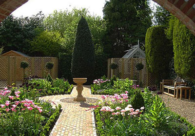 通过园艺艺术将植物修剪成交叉的十字,极具景观性,在花园的两边都有修剪了植物,整个格局不禁让人想到了纵横交错的迷宫,十分具有观赏性。